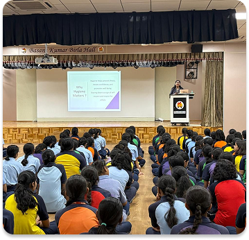 An interactive health session at Birla Vidya Niketan, Delhi, on 17 April 2025, focused on personal hygiene, menstrual health, and everyday etiquette for students of Classes 6 to 9. The session encouraged open discussions, helping young girls understand their bodies, clarify myths, and build healthy, confident habits through awareness and education.